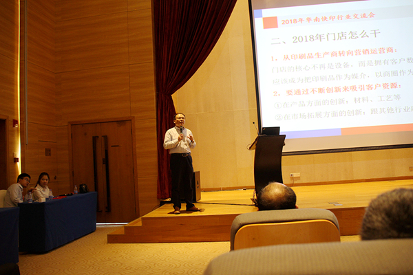2018年3月5日,由天意有福主辦、大洋圖文、富麗圖快印聯(lián)合協(xié)辦的主題為“華南快印2018怎么搞交流會”在廣州市黃埔區(qū)保利假日酒店報告廳隆重舉行。天意有福副總經(jīng)理董祖明、王亦兵、吳楊文,富麗圖快印總經(jīng)理束永春,柯尼卡美能達梁曉麟,大洋圖文總經(jīng)理陳育明,悟空快印劉敏,六九快印曾中輝,點源科技總經(jīng)理何根山等13位嘉賓出席了此次會議。下午13點30分,柯尼卡美能達梁曉麟先生致辭,宣布會議開始,近兩百家快印企業(yè)代表針對行業(yè)趨勢、互聯(lián)網(wǎng)技術(shù)應用以及未來發(fā)展方向等話題,結(jié)合本公司經(jīng)營策略展開了精彩的行業(yè)對話。